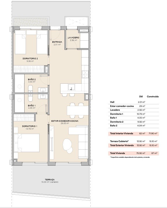 Each home features bright open-plan living spaces, combining the living room, dining area and kitchen to create a comfortable and functional environment. Large windows and sliding doors allow natural light to flood the interiors and connect seamlessly with the outdoor terraces, ideal for enjoying the Mediterranean climate of the Costa Blanca throughout the year.