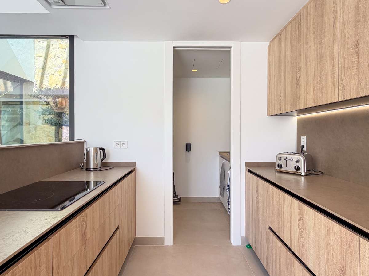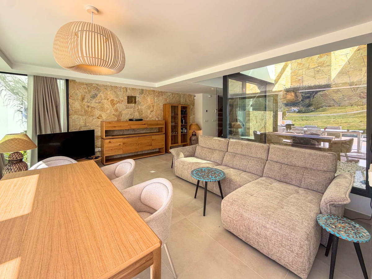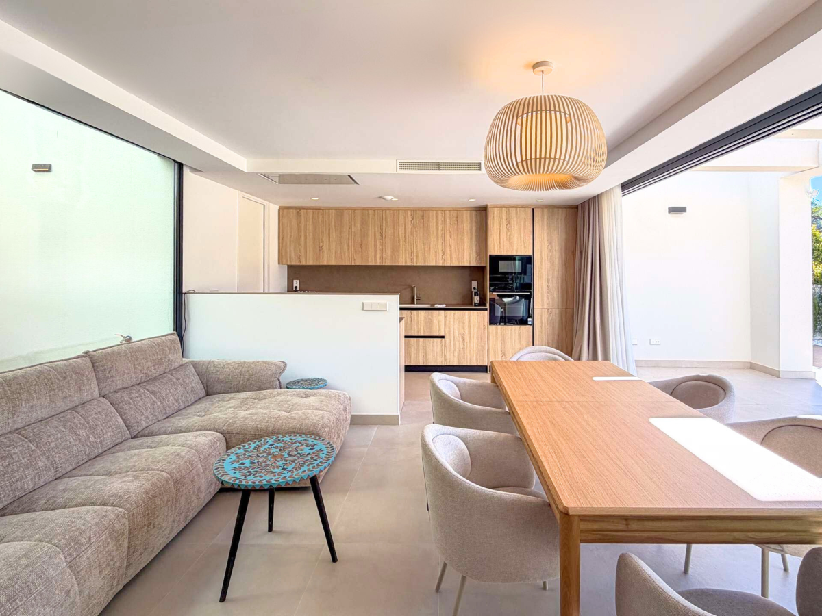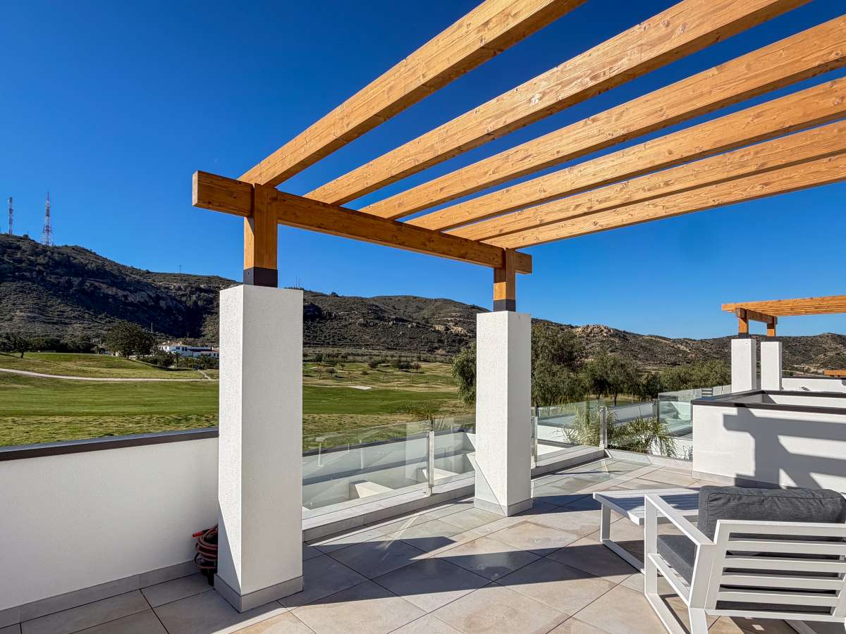 Discover this spectacular pre-owned villa of the exclusive Makalu II model, situated on the first line of the golf course within the prestigious Font del Llop Golf Resort, a privileged setting that combines nature, privacy, and a unique lifestyle on the Costa Blanca. This property stands out for its modern design, spacious rooms, and seamless integration with the surroundings, offering breathtaking open views of the golf course from its terraces and outdoor areas. On the main floor, the villa features a large and bright living-dining room with an open-plan kitchen, creating an elegant and functional space. From here, you have direct access to the outdoor terrace, where the private pool and golf course views take center stage. Also on this floor are two bedrooms and two bathrooms, one of which is en suite, as well as a convenient separate laundry room. Upstairs, there is an en suite bedroom with access to a large private terrace, ideal for enjoying the sun and unobstructed views of the natural surroundings and the golf course. The generously sized basement adds significant value to the property, offering space for a cinema room or entertainment area, as well as two additional bedrooms and two bathrooms, allowing the home to be adapted to different needs, whether for guests or family use. The property is completed with a private garden, swimming pool, spacious terraces, and on-site parking, all in a home designed to enjoy the Mediterranean climate year-round. Located just 10 minutes from Alicante Airport and approximately 20 minutes from the beaches, Font del Llop offers an exclusive setting with an 18-hole golf course, restaurant, sports facilities, and all necessary amenities. A unique opportunity for those seeking design, exclusivity, and quality of life on the golf course.