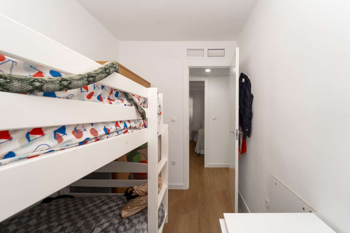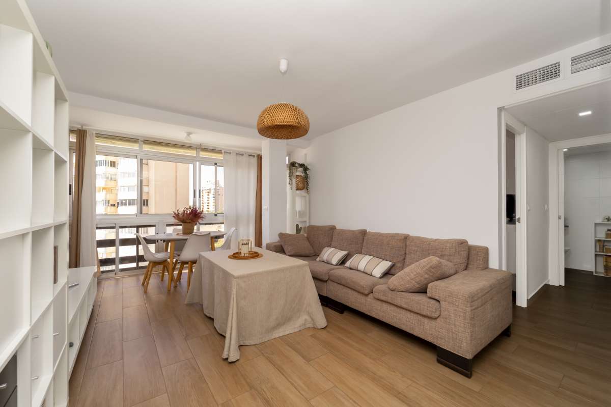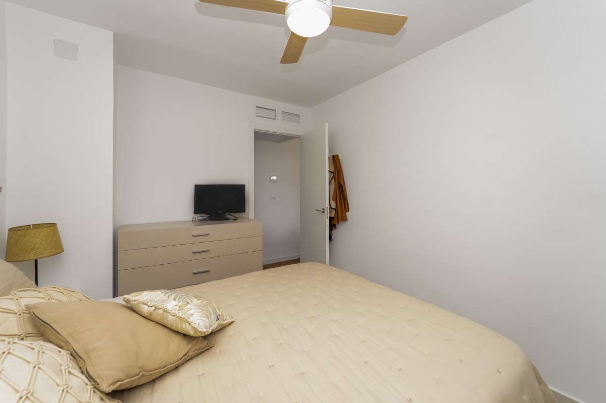 Beachfront apartment in Muchavista, located in the renowned Las Lanzas urbanization, one of the most complete and sought-after in the area.This first-floor apartment with elevator access has been completely renovated and is ready to move into. It features three bedrooms and one bathroom, with a functional and well-designed layout. The open-plan kitchen is integrated into the living room, creating a more spacious and bright environment.It stands out for its south-facing orientation and direct sea views, guaranteeing excellent natural light throughout the day. It also features ducted air conditioning, providing comfort year-round.The complex offers a complete and well-maintained environment, with direct beach access and spacious communal areas: a swimming pool for adults and children, tennis and paddle tennis courts, a basketball court, a ping-pong area, a children's play area, green spaces, and a barbecue area. All of this is within a gated community with concierge service.The property includes communal parking and is located in a well-established area, with all amenities nearby, including public transport (TRAM), supermarkets and restaurants.A very complete option on the seafront, ideal as a main residence, second home or investment in one of the best areas of Muchavista.