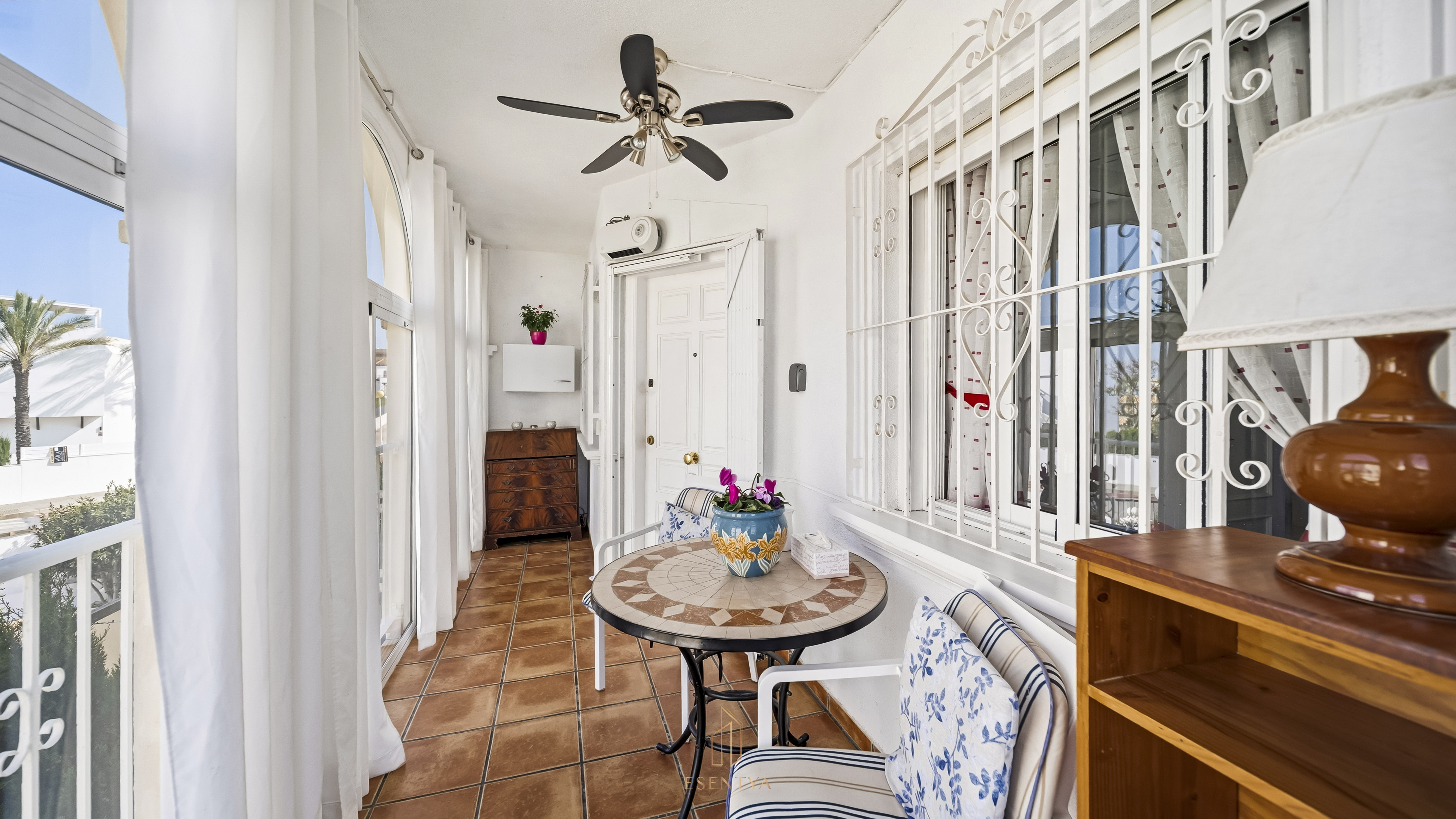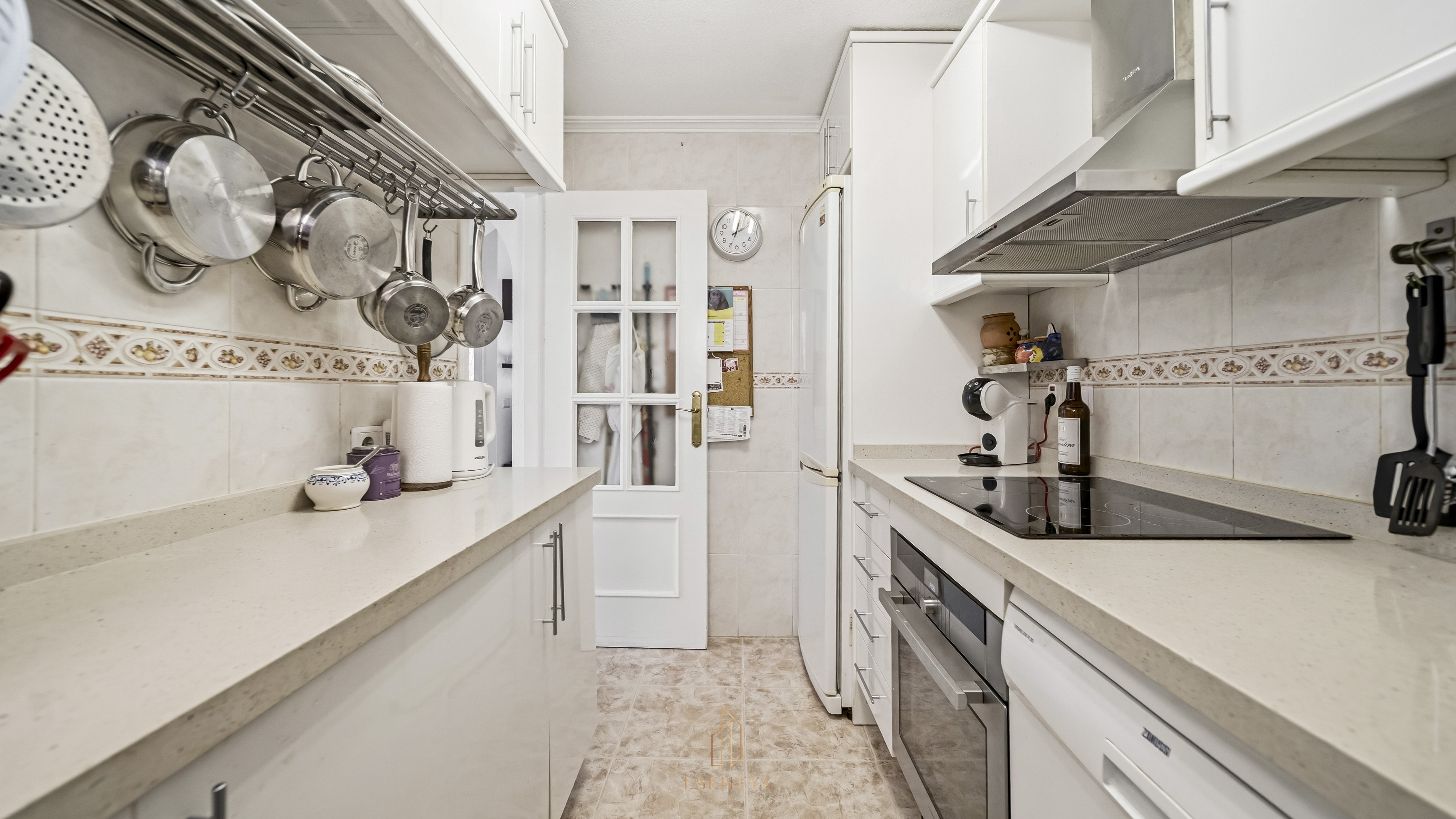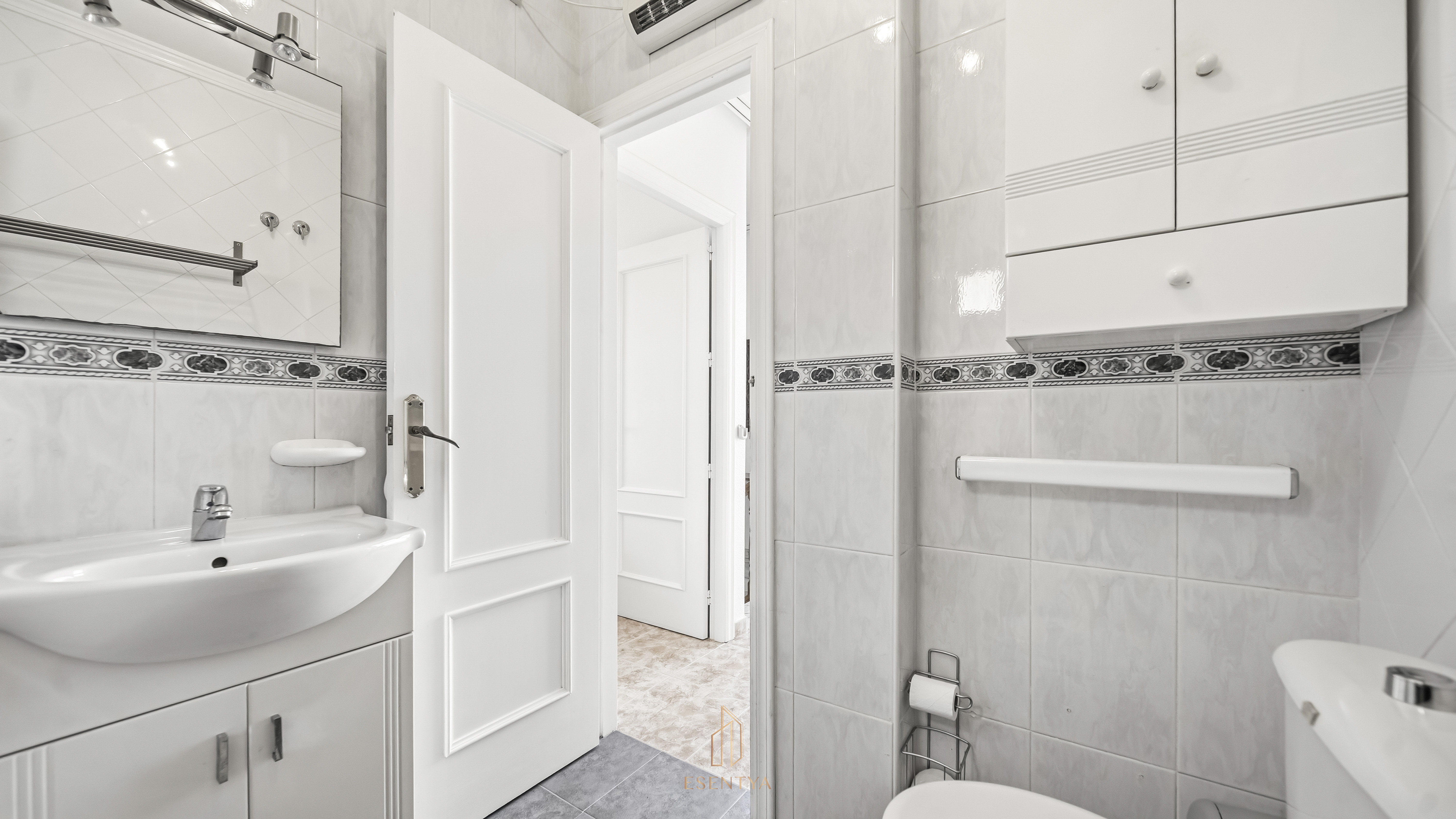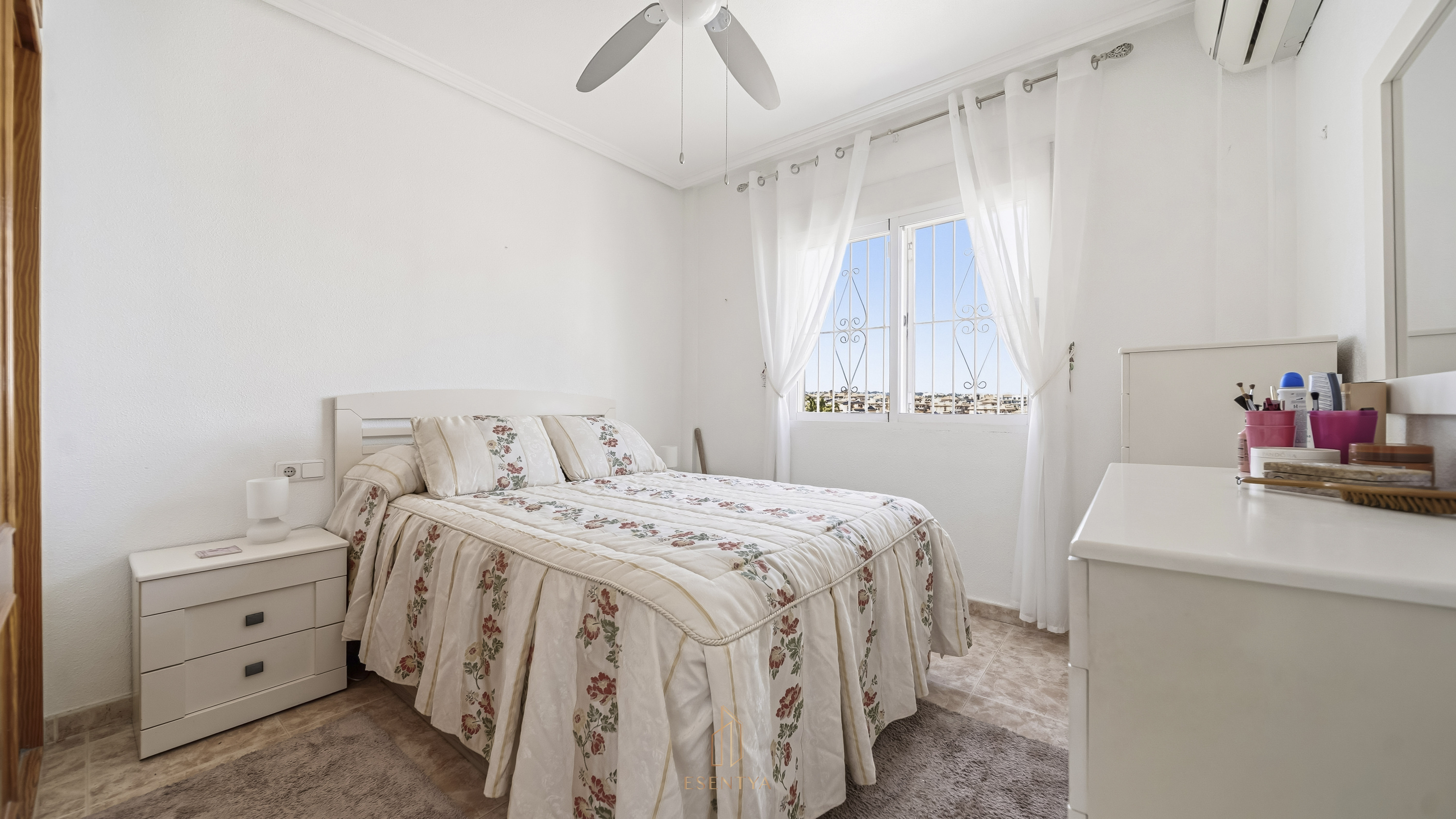 Duplex penthouse with solarium in La Regia, Orihuela Costa. Duplex penthouse distributed over two floors, located in a gated community with a communal swimming pool. Northeast-facing, sold furnished and equipped with air conditioning and appliances. The main floor includes a living room, kitchen, 2 bedrooms and 1 bathroom, as well as a glazed entrance. The upper floor features 1 bedroom, a full bathroom and access to a solarium. Located within walking distance of all services and just 2 km from La Zenia beach. Key features 3 bedrooms 2 bathrooms Duplex penthouse Solarium Garden Parking Main floor + upper floor Northeast orientation Sold furnished Air conditioning Appliances included Glazed entrance Communal swimming pool Gated community Walking distance to services 2 km from the beach 0.5 km to restaurants, bars and supermarkets 2.5 km to La Zenia Boulevard Annual costs: Community: 363.6 IBI: 196.36