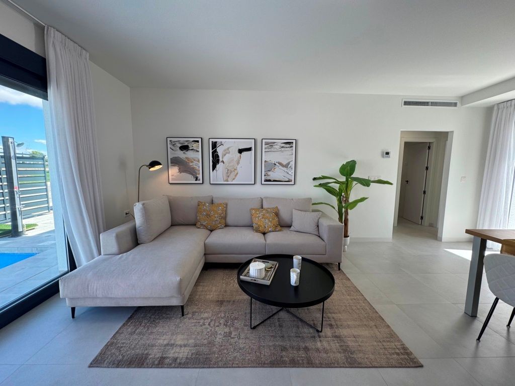 La villa tiene 4 dormitorios y 3 baños equipados. La propiedad ha sido diseñada con un estilo contemporáneo y un concepto abierto, que consta de cocina totalmente equipada y salón-comedor.