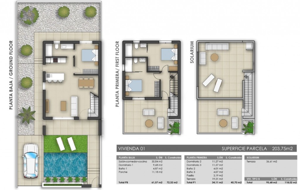 Les superbes plages de Torre de la Horadada et de Mil Palmeras, avec leur sable doré et leurs promenades pittoresques, sont à seulement 5 minutes. La région offre également un réseau bien développé de sentiers pédestres et cyclables, ainsi qu'un large éventail d'activités sportives et de loisirs. Les amateurs de golf apprécieront le parcours 18 trous de Lo Romero, situé à proximité, à quelques minutes en voiture de la ville.