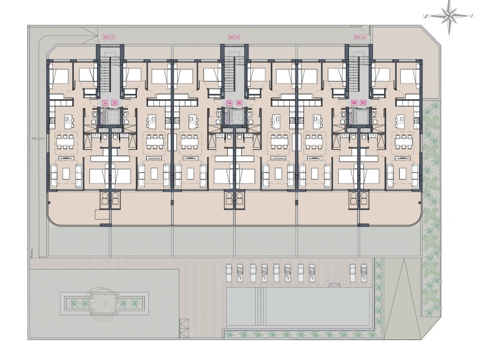 U kunt kiezen uit appartementen op de begane grond met ruime terrassen (85 - 152 m²), appartementen op de eerste verdieping met grote terrassen (22 - 27 m²) en penthouses met grote terrassen (19 - 21 m²) en zonnige solariums (18 - 87 m²).