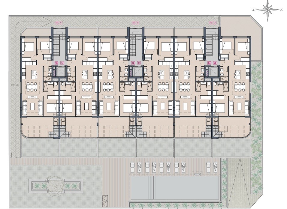 U kunt kiezen uit appartementen op de begane grond met ruime terrassen (85 - 152 m²), appartementen op de eerste verdieping met grote terrassen (22 - 27 m²) en penthouses met grote terrassen (19 - 21 m²) en zonnige solariums (18 - 87 m²).