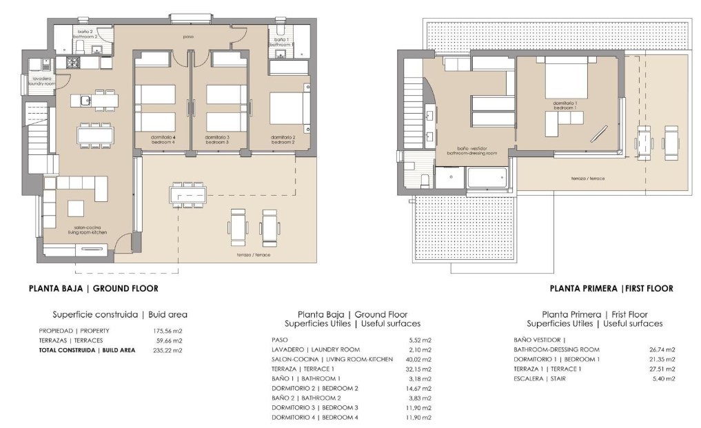 Exclusieve villa's met 3 of 4 slaapkamers en 2 of 3 badkamers, ontworpen om optimaal te profiteren van natuurlijk licht en ruimte. Met woonoppervlaktes variërend van 298 m² tot 400 m² combineert elke woning elegantie, comfort en functionaliteit.