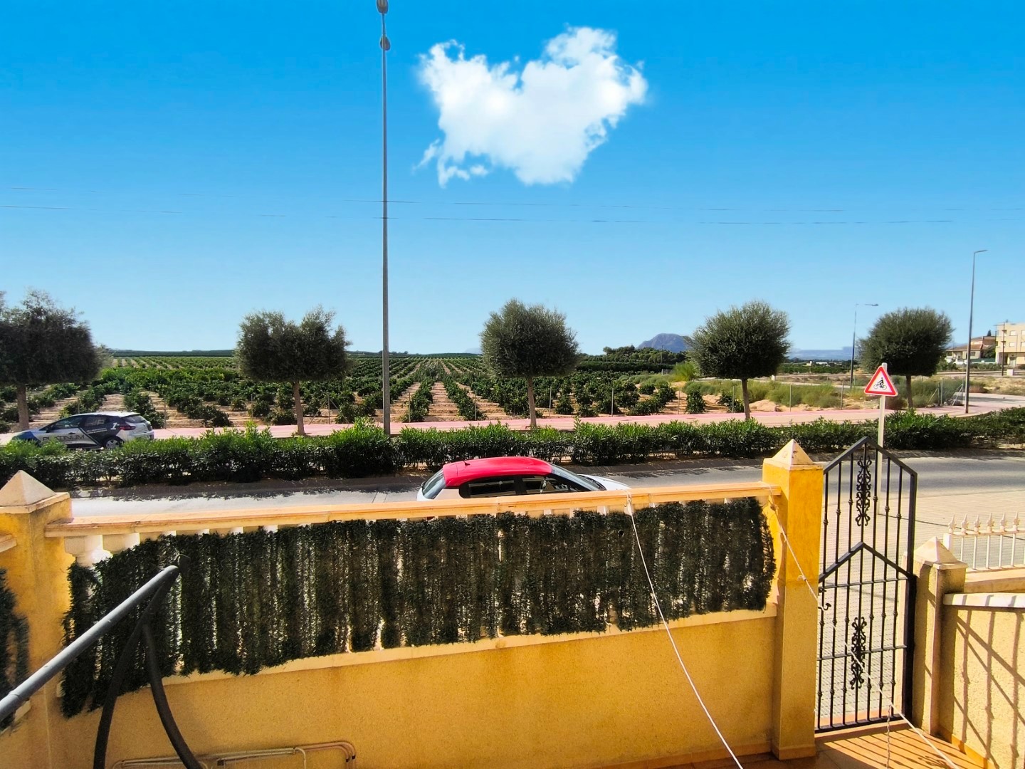 Located on the elevated ground floor on what is arguably the best block in the Fontana Complex in Algorfa village - with the most amazing views from its terrace. You can access the property via a private gate from the road or from inside the main block. From the block you enter into a useful storage area and then into a hallway. On the left the American style kitchen has a range of wall and base units, built in oven/hob and freestanding fridge freezer and washing machine. Door through to a further storage area. Breakfast bar to the living area. The open plan living and dining area is light and bright with sliding doors onto a good sized terrace with steps down to a garden area and gate to the road. From the terrace you can take in the fantastic views over the orange groves and to the mountains beyond. Sit and enjoy the amazing sunsets in the evenings! An archway from the living room leads to the two double bedrooms, both with fitted wardrobes along with a family bathroom. The property is being sold fully furnished and has the benefit of an allocated underground parking space. Residents also have access to a lovely communal pool and gardens. The property does require some TLC and has been priced accordingly. The village has a range of bars, restaurants, bank, doctors, pharmacy along with several other shops and services. Alicante airport is a 40 minute drive, the beaches of Guardamar are approx 15 minutes and all other towns such as Almoradi, Benejuzar and Benijofar are accessible within 5 minutes. La Finca Golf course along with its 5* spa and hotel complex are a few minutes drive away. The area has an abundance of facilities and amenities and great transport links via the AP7 motorway.