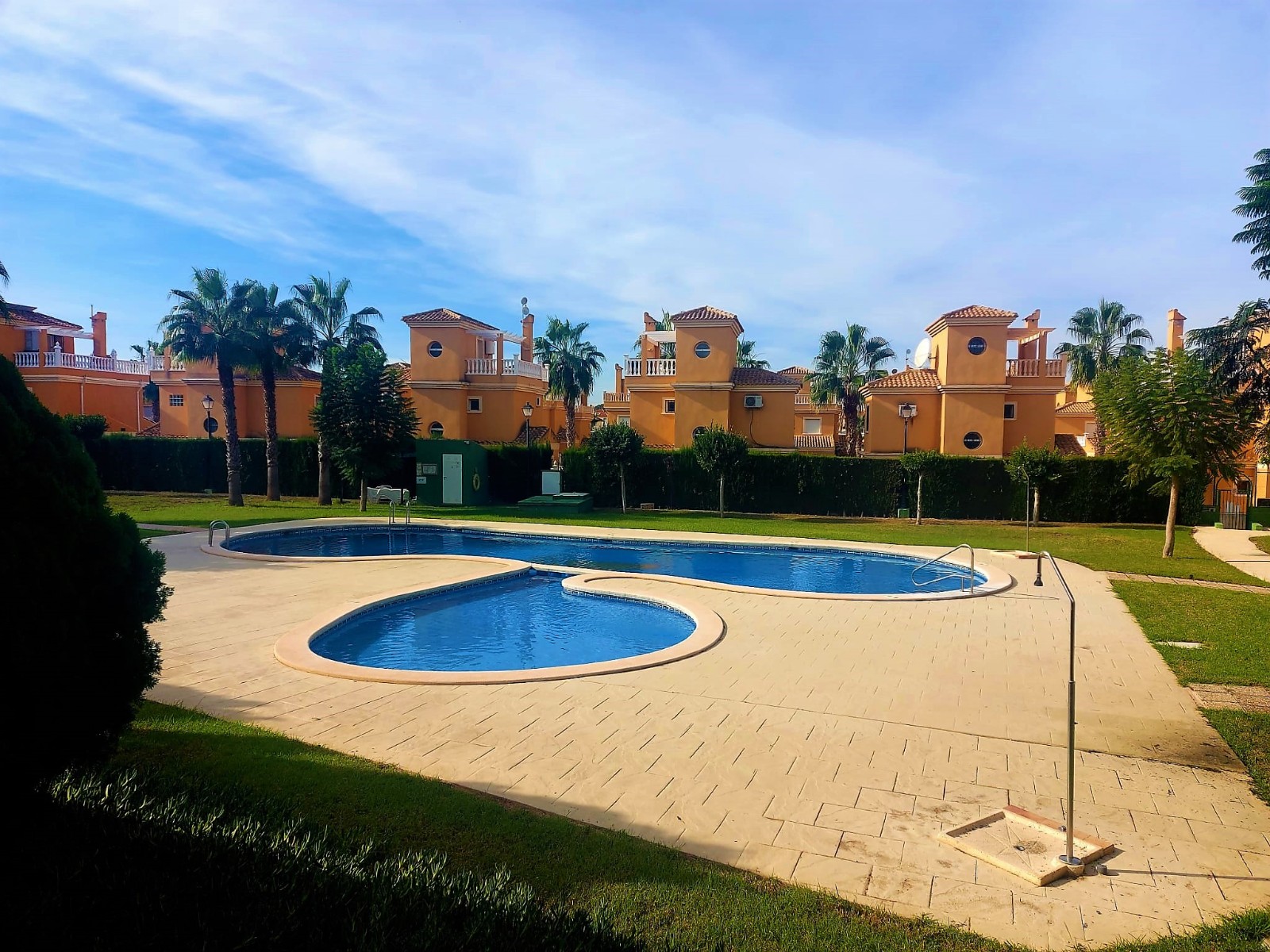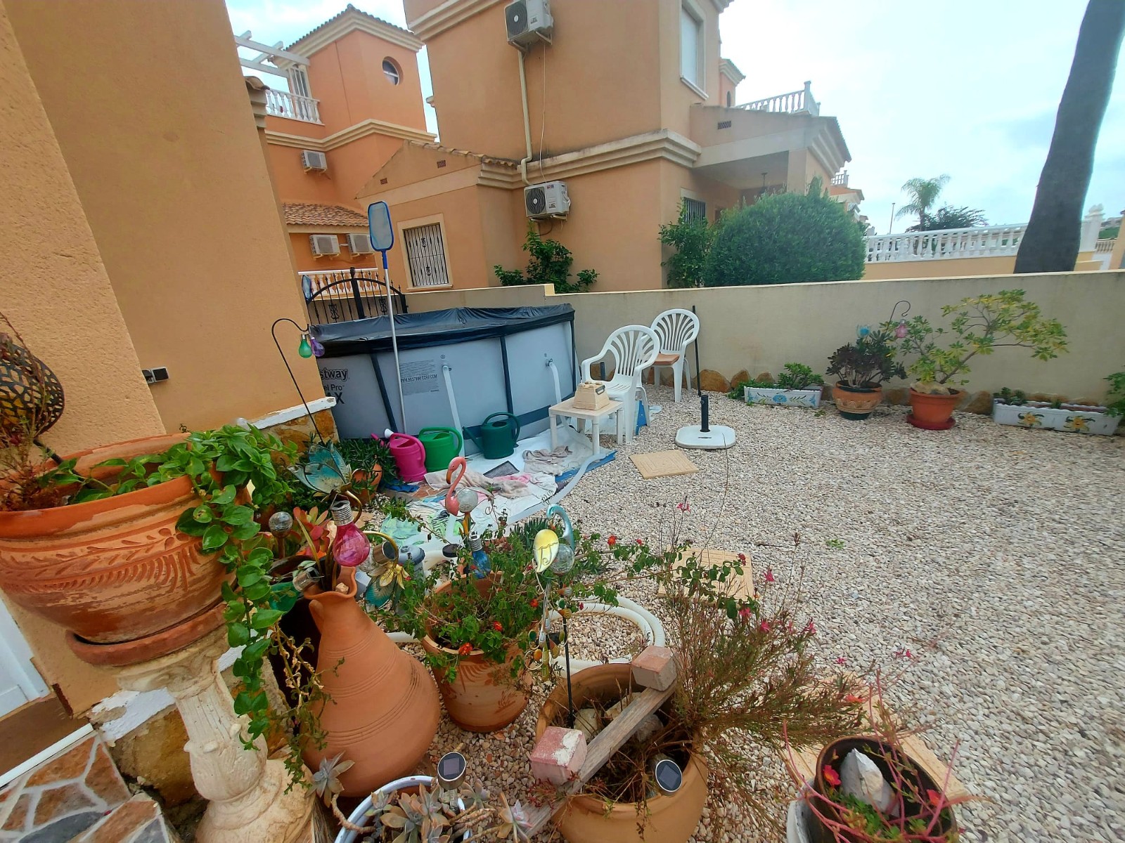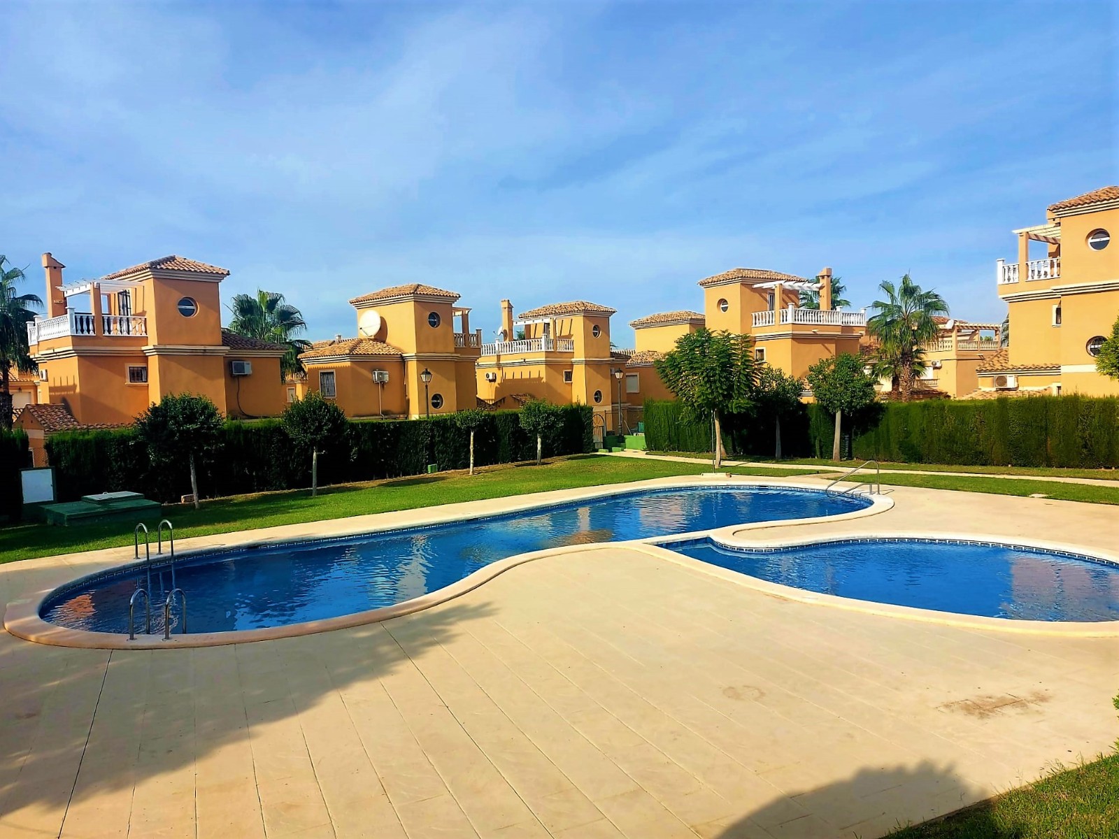 This beautifully presented Detached Villa offers comfortable family living with a host of features, a desirable location, and easy access to local amenities. Ground FloorBright conservatory/porch leading into a spacious living and dining areaModern, reformed kitchen with built-in oven, microwave housing unit, hob, and extractor fanDouble bedroom with fitted wardrobesConvenient shower room with WC First FloorTwo double bedrooms with fitted wardrobesMaster bedroom with private balcony terrace overlooking the communal pool and landscaped green areasFamily bathroom with walk-in shower Additional FeaturesLarge solarium roof terrace boasting stunning panoramic views of the pink salt lakes, mountains, and countrysideCovered car portGas central heatingAir conditioningPrivate plunge poolBrick built storage room Beautiful communal swimming pool and childrens pool set within expansive landscaped gardens, complete with gazebo and outdoor showers Local AmenitiesWithin walking distance of Lo Crispin Tavern Bar and Restaurant, offering live weekend entertainment and a childrens play areaClose to the urbanisations commercial centre with La Hacienda Bar and Grill, hairdressers, ATM, Lynns Mini Supermarket and café, and Noeke 10Daily school bus service from the urbanisation to local schools in Algorfa Prime LocationJust 5 minutes by car (or a pleasant 25-minute walk along the camino path) to the heart of Ciudad Quesada with its wide range of shops, supermarkets, restaurants, cafés, bars, pharmacy, medical centre, dentist, opticians, beauty salons, and much moreFamily-friendly activities nearby including bowling, mini-golf, tennis, football, fitness centres, spa facilities, and the water parkLa Marquesa and La Finca Golf Courses within 510 minutes driveThe beautiful beaches of Guardamar del Segura and La Mata only 15-20 minutes awayTorreviejas beaches, promenade, vibrant nightlife, and Habaneras Shopping Centre within easy reachZenia Boulevard Shopping Centre just 25 minutes away Excellent road connections via the AP-7 and N-332 to Alicante, Elche, Murcia, Cartagena and beyond This villa perfectly combines comfort, convenience, and lifestyle, making it an outstanding choice for permanent living, holidays, or investment.