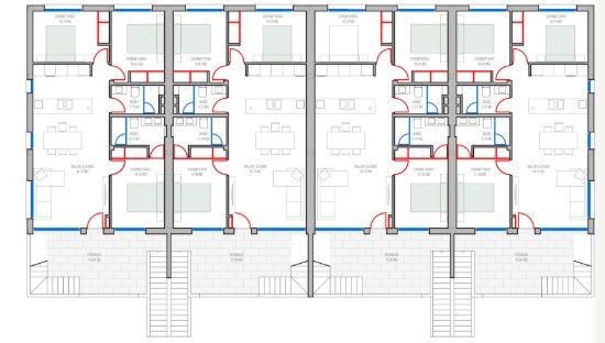 De buitenkant van deze woningen is ontworpen om optimaal te genieten van het mediterrane klimaat. Elke bungalow beschikt over een eigen tuin, perfect voor het creëren van een persoonlijke groene ruimte of om te genieten van momenten in de buitenlucht. De ruime terrassen bieden een ideale plek om te ontspannen of te delen met vrienden en familie, terwijl het solarium extra ruimte biedt om te zonnebaden of van het uitzicht te genieten. De gemeenschap beschikt ook over gemeenschappelijke tuinen, wat een vleugje natuur en frisheid toevoegt aan de omgeving.