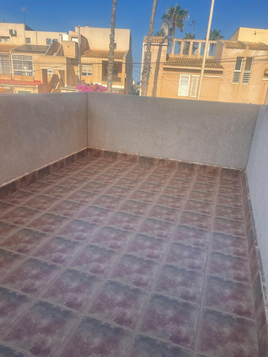 Gelegen op een toplocatie, op slechts 95 meter van het strand in een rustige wijk van Torrevieja, presenteren wij deze schitterende hoekwoning in uitstekende staat. Met een royale woonoppervlakte van 210 m², verdeeld over drie verdiepingen, biedt deze woning volop ruimte, licht en comfort.De woning beschikt over vijf ruime slaapkamers en drie complete badkamers. Op de begane grond vindt u een gezellige woon- en eetkamer met een open Amerikaanse keuken, voorzien van een eethoek en een praktische bijkeuken. De indeling is perfect voor zowel permanente bewoning als vakantieverhuur.Buiten zijn er drie privéterrassen en een solarium met prachtig uitzicht op zee ideaal om te genieten van het mediterrane klimaat. Bewoners hebben ook toegang tot een groot gemeenschappelijk zwembad met uitgestrekte tuinen. De woning beschikt bovendien over een ruime privégarage met directe toegang tot het huis.Dankzij de ligging op een hoekperceel, de uitstekende staat en de nabijheid van zee is dit een unieke kans voor grote gezinnen, als tweede verblijf of als investering in vakantieverhuur.