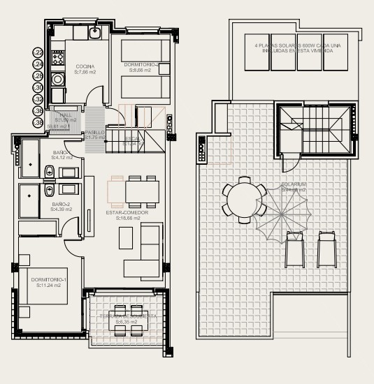 Het complex wordt gebouwd in twee hoogtes, met keuze uit 2 of 3 slaapkamers, terras/solarium of tuin. Alle huizen hebben een garage inbegrepen in de prijs en een onovertroffen uitzicht.