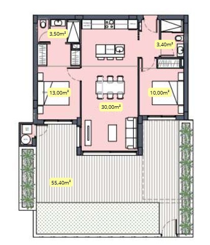 Een uitzonderlijke collectie appartementen en penthouses met 2 en 3 slaapkamers , voorzien van royale terrassen variërend van 23,4 m² tot meer dan 300 m² .