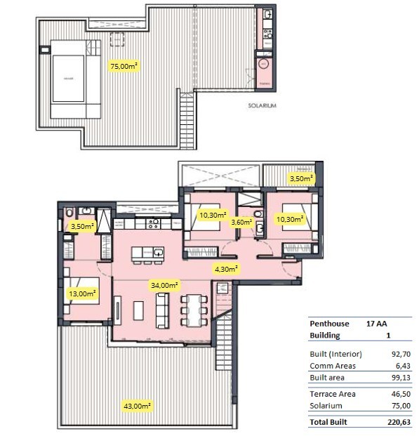 De penthouses beschikken over fantastische solariums met zwembad en buitenkeuken!