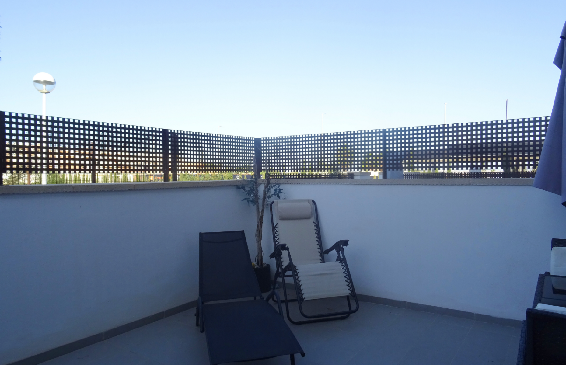 A stylish and well-designed townhouse in Los Balcones on the Costa Blanca, sold fully furnished. The property is arranged over two floors and offers three spacious bedrooms, three fully equipped bathrooms, and a bright open-plan kitchen connected to a cozy living area. There is access to a terrace as well as a rooftop solarium where you can enjoy the sun and views. The complex features a well-maintained communal swimming pool, and the property includes a designated parking space. Los Balcones is a popular residential area on the Costa Blanca, located just south of Torrevieja, known for its peaceful atmosphere, excellent services, and great location. The area offers a wide range of shops, restaurants, cafés, pharmacies, and other everyday services within walking distance, as well as close proximity to schools and healthcare. Nature lovers will appreciate the nearby Torrevieja salt lakes, famous for their scenic walking paths. Los Balcones is only a short drive from Mediterranean beaches, golf courses, and the center of Torrevieja, with good transport connections and easy access to Alicante Airport. Contact us for more information about this wonderful property!