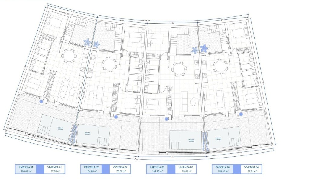 Dit exclusieve nieuwbouwproject omvat in de eerste fase slechts vier moderne herenhuizen, gelegen in het gewilde El Alba Mediterranean Resort in Torre Pacheco. Elke woning is gelijkvloers en combineert eigentijdse architectuur, een slimme indeling en een ontspannen mediterrane levensstijl.