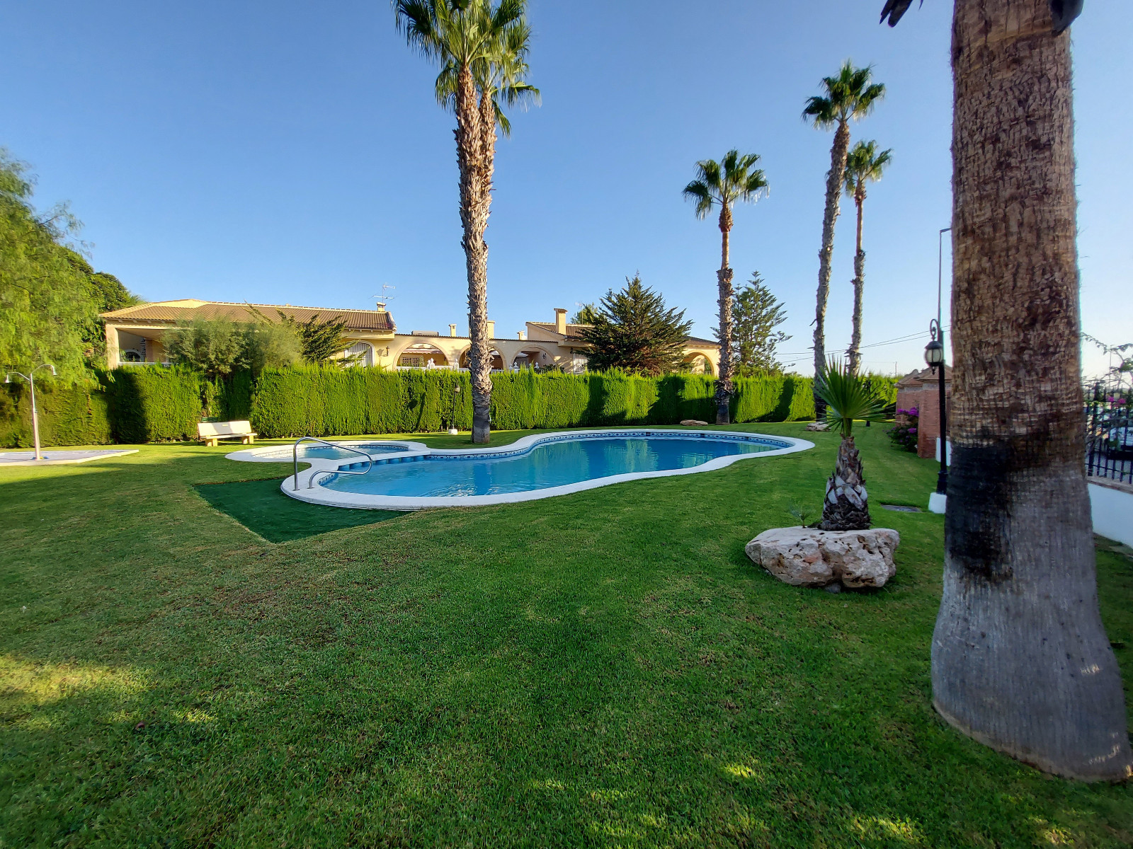 Bewoners hebben toegang tot aantrekkelijke gemeenschappelijke tuinen en een gedeeld zwembad binnen dit rustige, goed onderhouden complex.