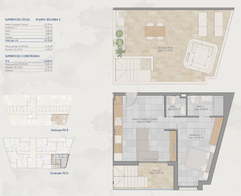 De privésolariums zijn voorzien van een pergola en een barbecue, waardoor ze de perfecte plek vormen om te zonnebaden, gasten te ontvangen of te genieten van een maaltijd in de Spaanse zon.