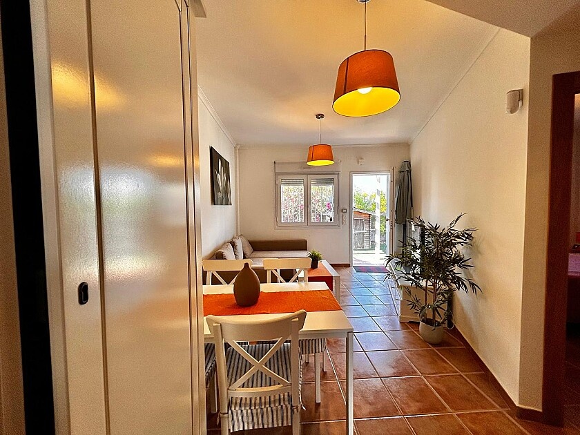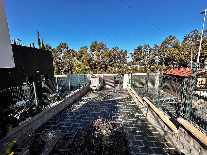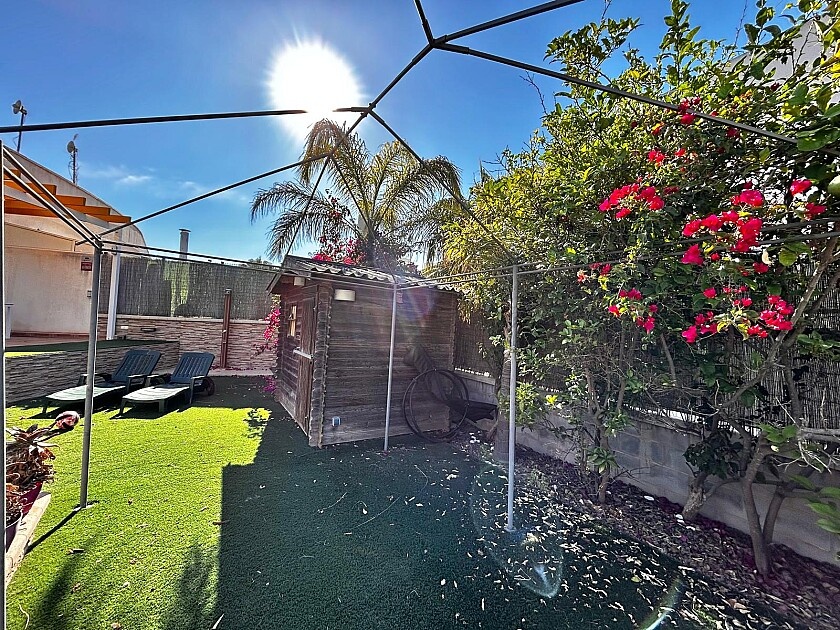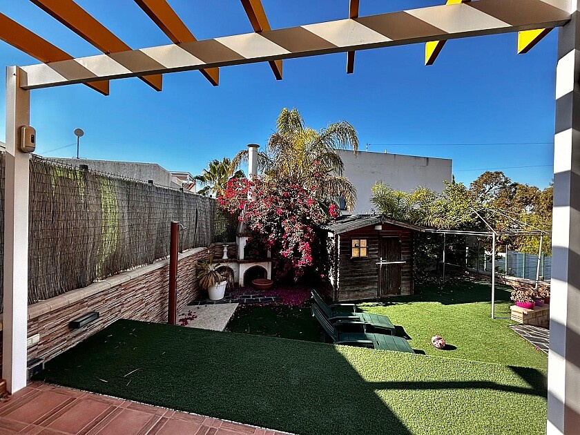 2 bedroom ground floor semidetached villa in Mil Palmeras . South-facing 2-bedroom ground-floor townhouse in Mil Palmeras The house has a living-dining room, separate kitchen, 2 bedrooms and 1 bathroom with shower. It also has a 21 m2 terrace and a 60 m2 garden with a barbecue area. The home has a communal pool, garden areas, and communal parking. Enjoy a great location and proximity to the beaches of Mil Palmeras and Campoamor. All necessary services are within walking distance, and La Zenia Boulevard shopping center is 5 kilometers away.