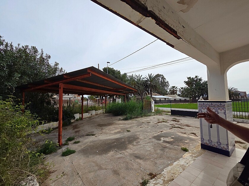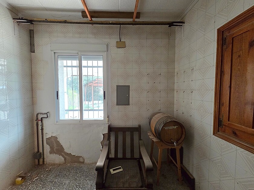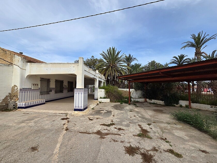 Large country house in Catral . Large country house with industrial warehouses to renovate in Catral. It is divided into three zones: the industrial part with several connected covered warehouses, the rural plot in the northern part, and the residential part in the southeast. In the latter, there are two adjoining apartments with two living rooms, three bedrooms, two kitchens, and two bathrooms. It's possible to build a swimming pool on the plot, as well as make modifications and renovations to establish a business and residence on the same property. The two residential homes are located on urban land, with double-glazed windows, mosquito nets and grilles, two wrought-iron fireplaces, a large southeast-facing front porch, a barbecue area, and three-phase electricity. Just a few minutes' drive from Catral, Almoradí and Crevillente.