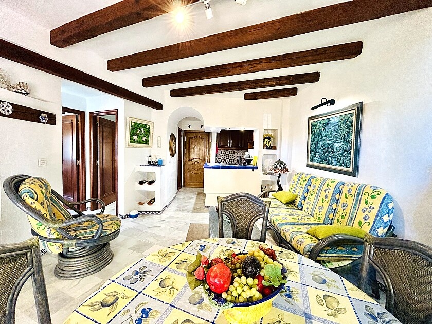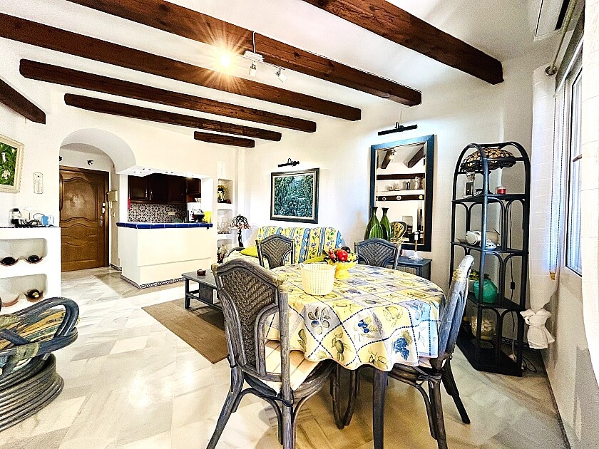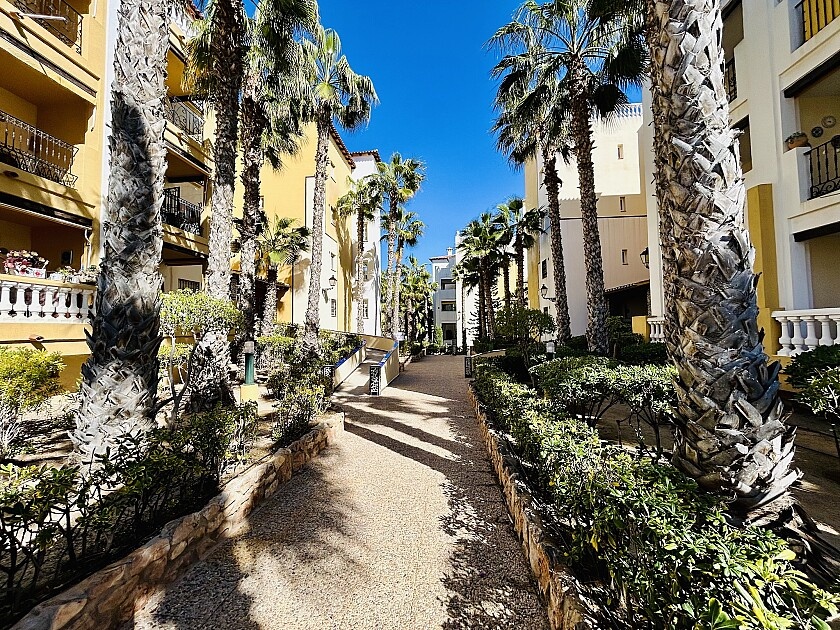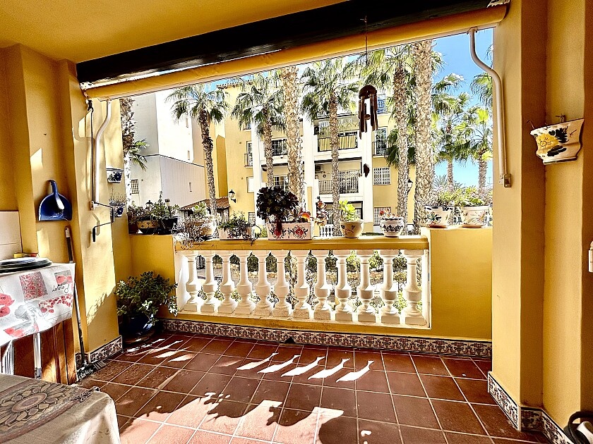 2-bedroom apartment with parking and storage in Torrevieja. Ground floor apartment in the exclusive Aldea del Mar development, next to Los Locos beach in Torrevieja. It has 2 bedrooms, 1 bathroom, a living-dining room with a kitchen, and a terrace overlooking the communal gardens. It has air conditioning, built-in wardrobes, an underground parking space and a storage room. It is in good condition and is being sold furnished, including appliances. Located 200 meters from Playa de los Locos, close to all amenities, including public transportation. Excellent option for permanent residence or year-round rental.