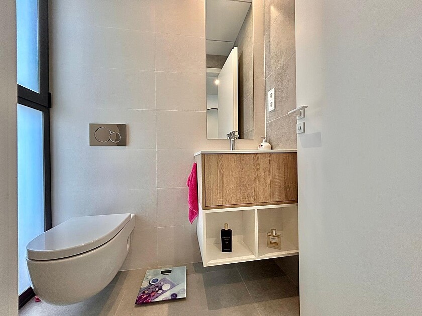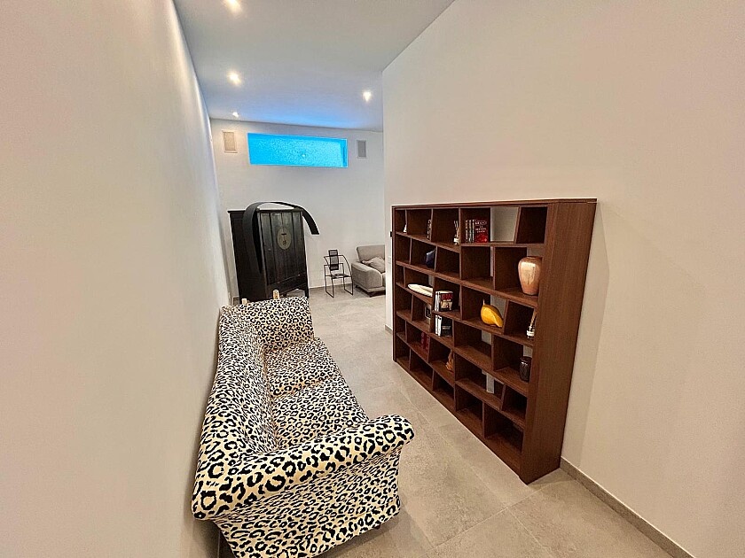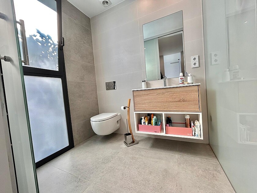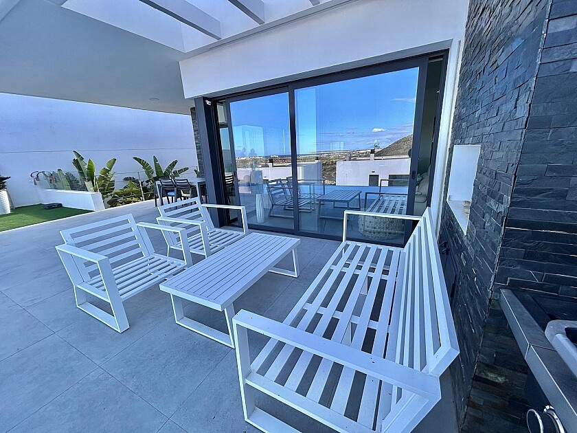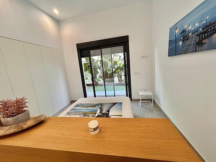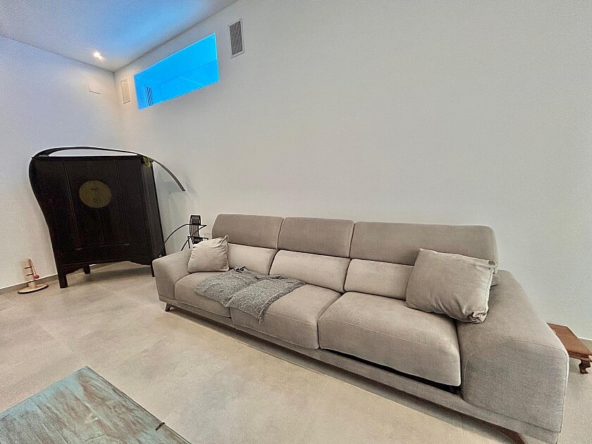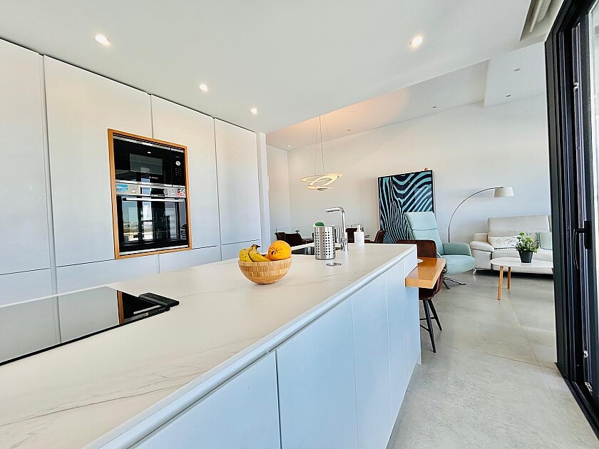 Luxury detached villa with sea views in Ciudad Quesada . This villa built on two floors has 3 bedrooms and 3 bathrooms, open plan kitchen and living/dining room, with access to the garden with another covered outdoor dining area, fitted wardrobes, private solarium, basement, double garage and private garden with infinity pool with waterfall and excellent sea views with panoramic views over the bay of Guardamar and Santa Pola. On the ground floor there is a large relaxation room with an underwater pool observatory. In addition to the La Marquesa golf course, the La Finca golf course is nearby, as well as the water park and the towns of Rojales, Almoradí, Guardamar and Torrevieja and their beaches. Modern luxury villa next to La Marquesa golf course in Rojales