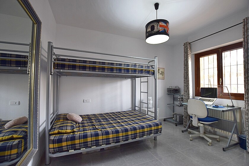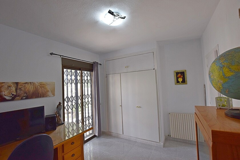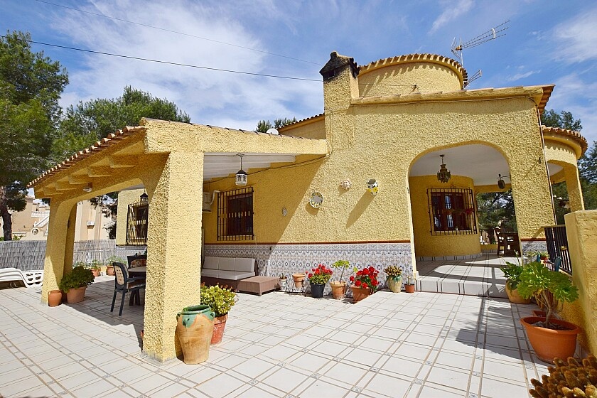 Large detached villa with 6 bedrooms and 3 bathrooms built on three floors on a landscaped plot of 800 sq.m., with a spacious parking in the garden and private swimming pool. The house is sold furnished and equipped, in very good condition. It has two living rooms, a large open kitchen with a rear utility room and a large storage room in the basement. Close to Villamartín and the other golf courses, 10 minutes by car to the beaches of Campoamor, Cabo Roig and La Zenia and the Zenia Boulevard shopping center. A few minutes walk to restaurants, cafes, supermarkets and other services.