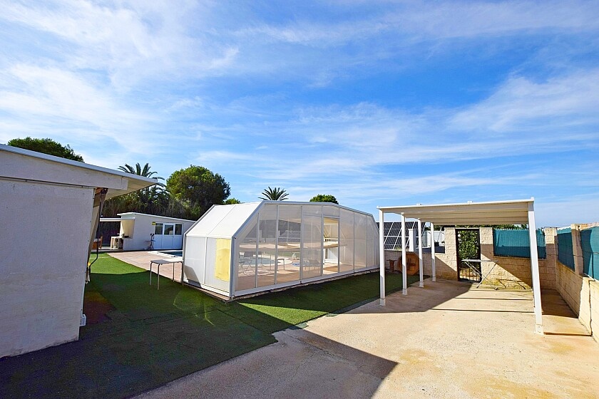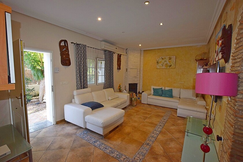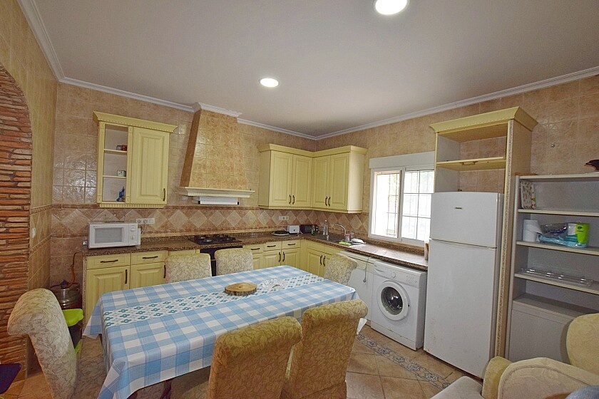 Large detached country house with potential use for bed & breakfast in Rojales . Country house with 8 bedrooms in Rojales. This two-storey property consists of two apartments on the ground floor with 2 bedrooms, 2 bathrooms, a large living-dining room and a separate kitchen. On the upper floor there are 4 bedrooms with en-suite bathrooms and a solarium with panoramic views. The 4,255 m2 plot is partially landscaped, with outdoor bathrooms, a storage room, a swimming pool with a cover for use outside the summer and a gym room. The entire house is sold furnished and equipped, with air conditioning, barbecue, summer kitchen and a large front porch facing the pool. The two independent apartments on the ground floor have 217 m2, the upper floor has 75 m2, the pool 32 m2, plus the gym room next to the pool with 16 m2. This property can be used as a residence or as a small hotel. 5 minutes by car to Rojales and all kinds of shops and other services (health centre, supermarkets...) 15 minutes drive to the beaches of Guardamar and La Marina.