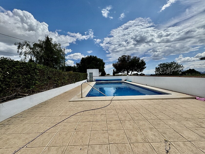 4 bedroom country house with private pool in Crevillente. Detached villa with 4 bedrooms and 3 bathrooms in the Crevillente countryside. This chalet enjoys a large and sunny garden with a private pool, a guest house with 2 bedrooms, bathroom and kitchen/living room and a summer kitchen. The house has solar panels and 2 hot/cold air conditioning machines. This recently renovated Villa comes fully equipped and furnished. Crevillente and Albatera are 5 minutes by car, Elche 15 minutes, where there is also a high-speed train station. Half an hour by car to the airport and city of Alicante, similar time to the city of Murcia. The beaches of Guardamar and La Marina are 40 minutes away by car.