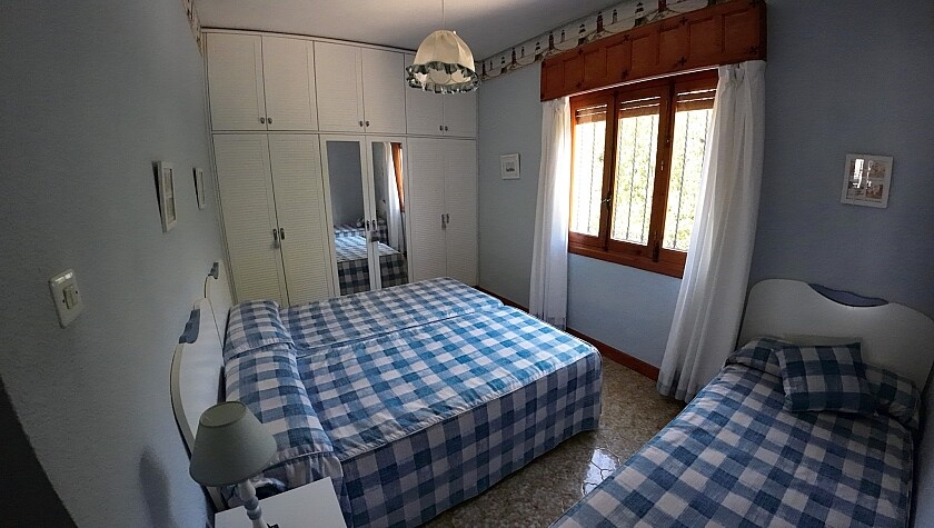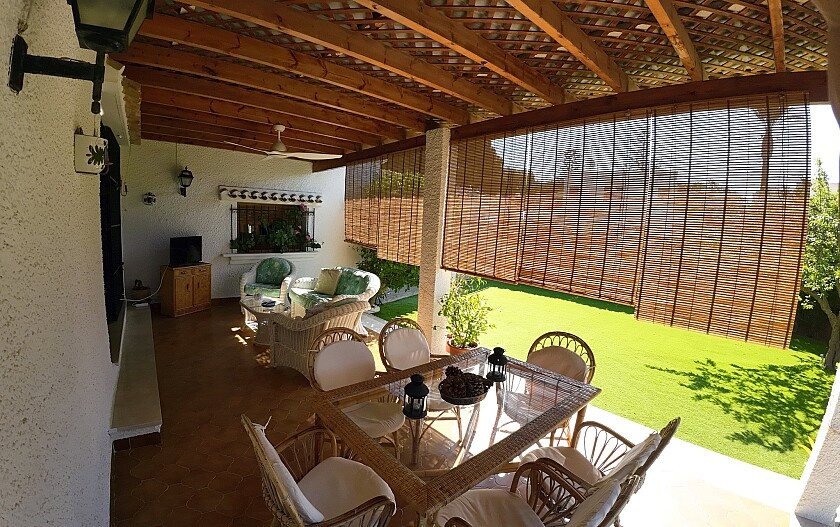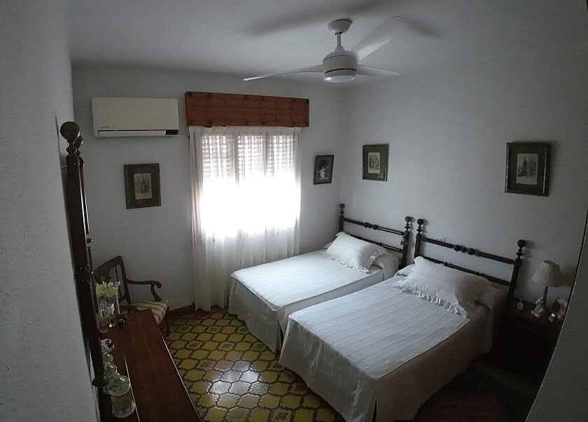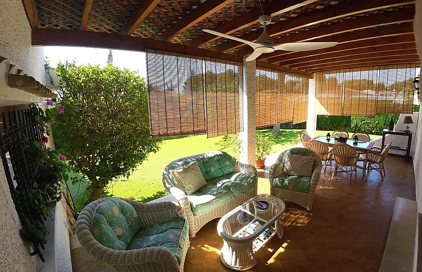 Individual 5-bedroom villa in Campoamor. Individual chalet with 5 bedrooms and 2 bathrooms, air conditioning and ceiling fans. Enjoy 3 terraces: winter, summer and roof terrace. The house has an interior garage, a covered one and a storage room. Access to Las Villas sports center 200 m away with swimming pool, tennis, paddle tennis, bar, ball center... Near the La Zenia Boulevard shopping center, just 600 m from the beach and other services. 15 minutes by car from Torrevieja