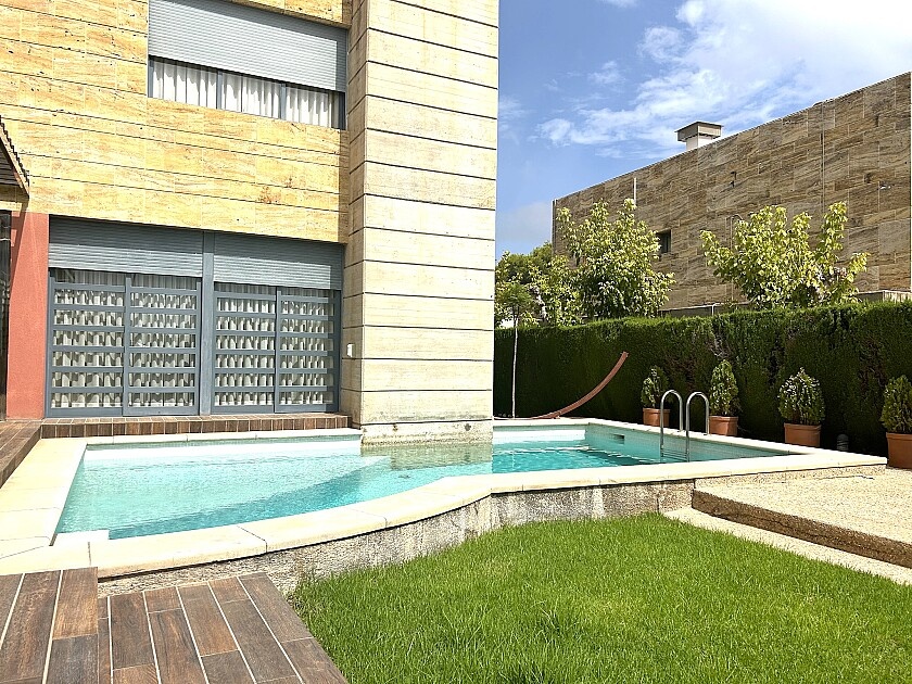 Detached villa with 4 bedrooms in Dehesa de Campoamor. Detached 4-bedroom villa on a 900 m2 plot, with garden and private pool in the Dehesa de Campoamor, a few meters from the beach. The house has 413 m2 distributed over three floors. On the ground floor, of 176 m2, there is a large living room with fireplace, separate kitchen, dining room, storage room with gallery and toilet. On the first floor, of 140 m2, there are four large bedrooms with their bathrooms and terraces. In the basement, with an area of 96 m2, there is a garage, storage room and technical rooms. The 900 m2 plot has a swimming pool, well-kept garden and summer terrace with barbecue area. The house is in very good condition, it is sold with furniture and appliances, it has air conditioning and also radiators for the winter, all bedrooms have built-in wardrobes and electric blinds. The distance to the nearest beach is 900 meters. Near the house, within walking distance, there are all the necessary services. An excellent option for a permanent residence or for vacations and year-round rentals.