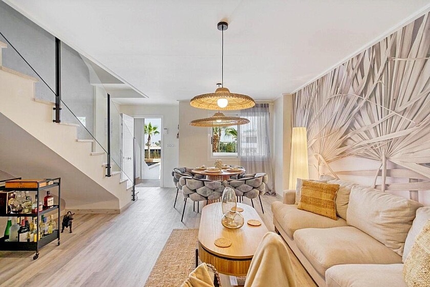 3 bedroom townhouse with pool views in Los Altos . Spacious and bright semi-detached house with 3 bedrooms and 2 bathrooms in Los Altos, Torrevieja, located in an exclusive gated community just a few meters from the sea. Sold furnished and equipped. The property stands out for its unobstructed views of the communal pool and a garden with natural grass. It is close to all services such as supermarkets, bars, restaurants, and public transportation. Alicante Airport is just a 1-hour drive away.