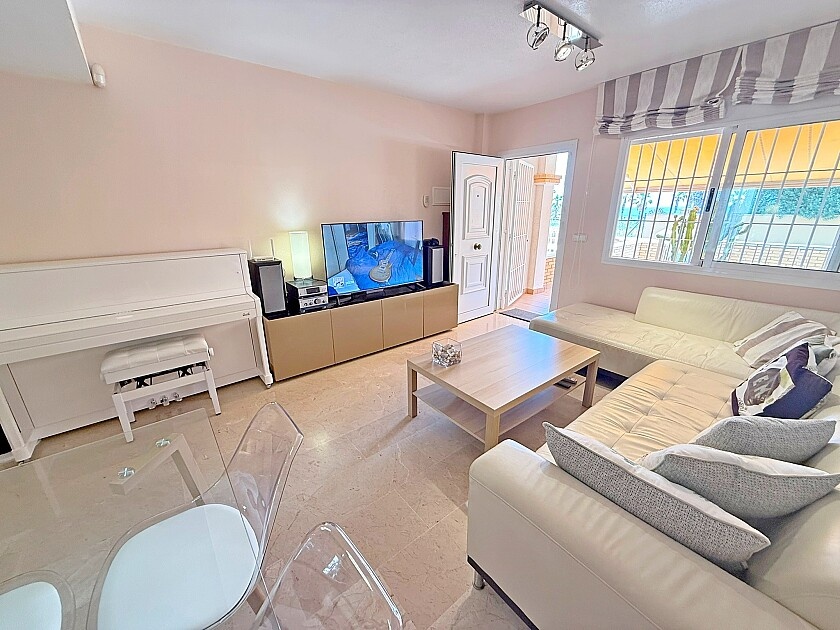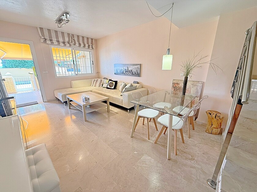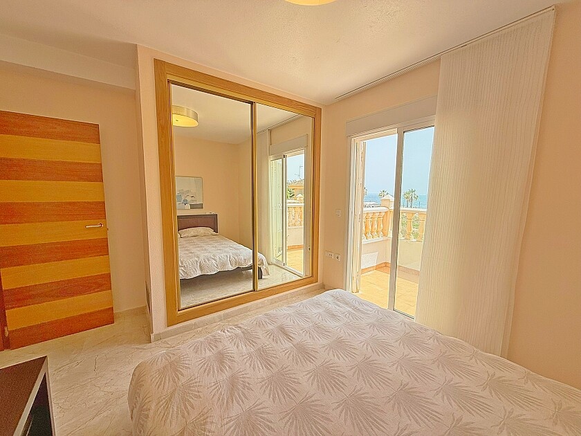 Seaviews 3 bedroom townhouse with garage . Spectacular townhouse just a few meters from the sea with beautiful sea views and an excellent location. The home has 3 bedrooms, 2 bathrooms, and is furnished and equipped, ready to move into. Includes a private garage with capacity for up to two vehicles. Located in a quiet area, with all services within walking distance and just 40 minutes from Murcia Airport and 1 hour from Alicante Airport.