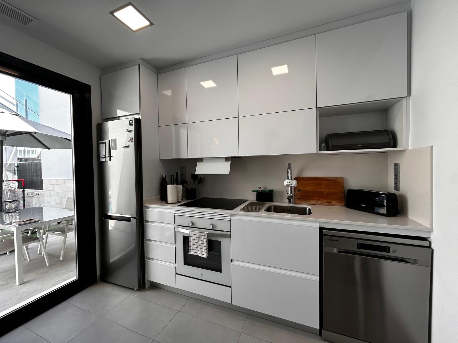 Luxury detached villa with 3 bedrooms and 2 bathrooms near Villamartín. This luxury villa features a spacious garden with a private pool, off road private parking and a large solarium with views to the pink salt lake. The property is sold fully furnished, including all appliances, with hot/cold air conditioning on all floors, and fitted wardrobes in all bedrooms. Close to all amenities, just 10 minutes by car to the beaches and coves of Orihuela Costa, 5 minutes to several golf courses and Villamartín Plaza. The Zenia Boulevard shopping centre is only a 5-minute drive away.
