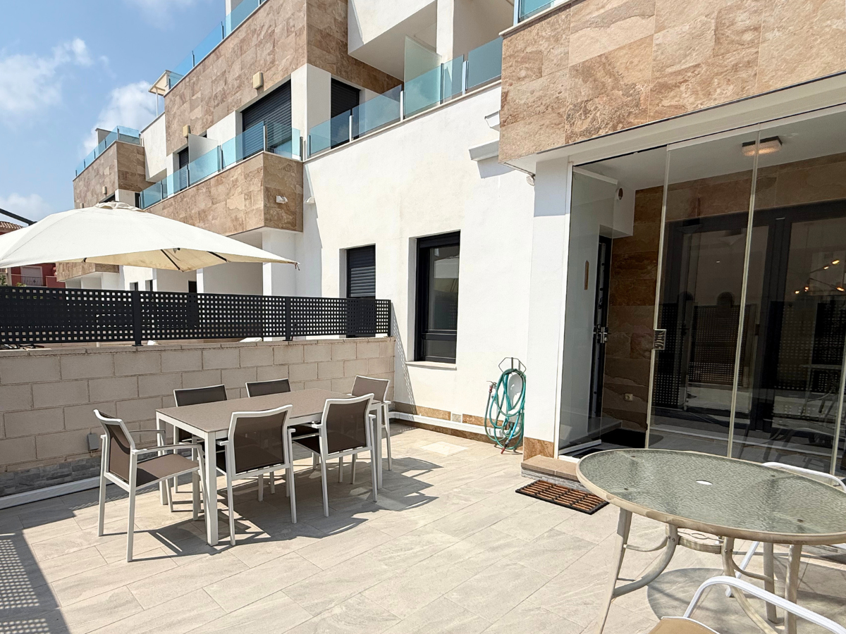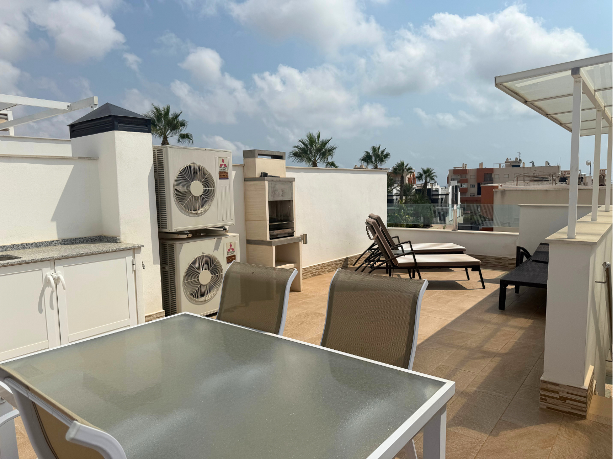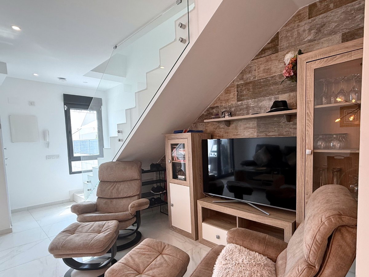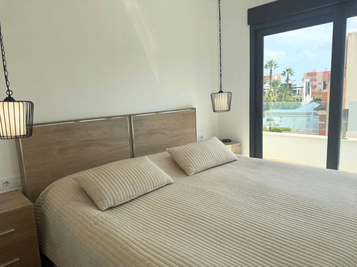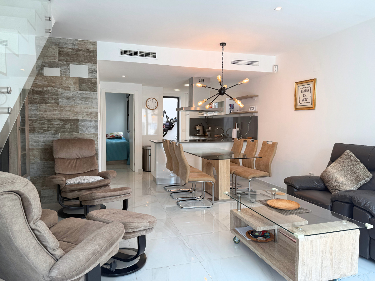 Elegant townhouse in the most sought-after area of Orihuela CostaThis two-floor townhouse, built in 2017, combines modern design, efficient use of space and a practical layout. Facing southeast, the property enjoys beautiful natural light throughout the day. The home features3 spacious bedrooms, 3 bathrooms, and ample wardrobe space that provides excellent storage. Large outdoor areas at both the front and back of the property offer versatile options for outdoor living and entertaining. There is also a solarium with stunning views the perfect place to relax in the sun or enjoy evenings with family and friends. Included with the property: built-in air conditioning on both floors, home appliances, and modern furniture. The townhouse is located in one of the most sought-after areas of Orihuela Costa close to beautiful beaches, shops, restaurants, and all essential services.