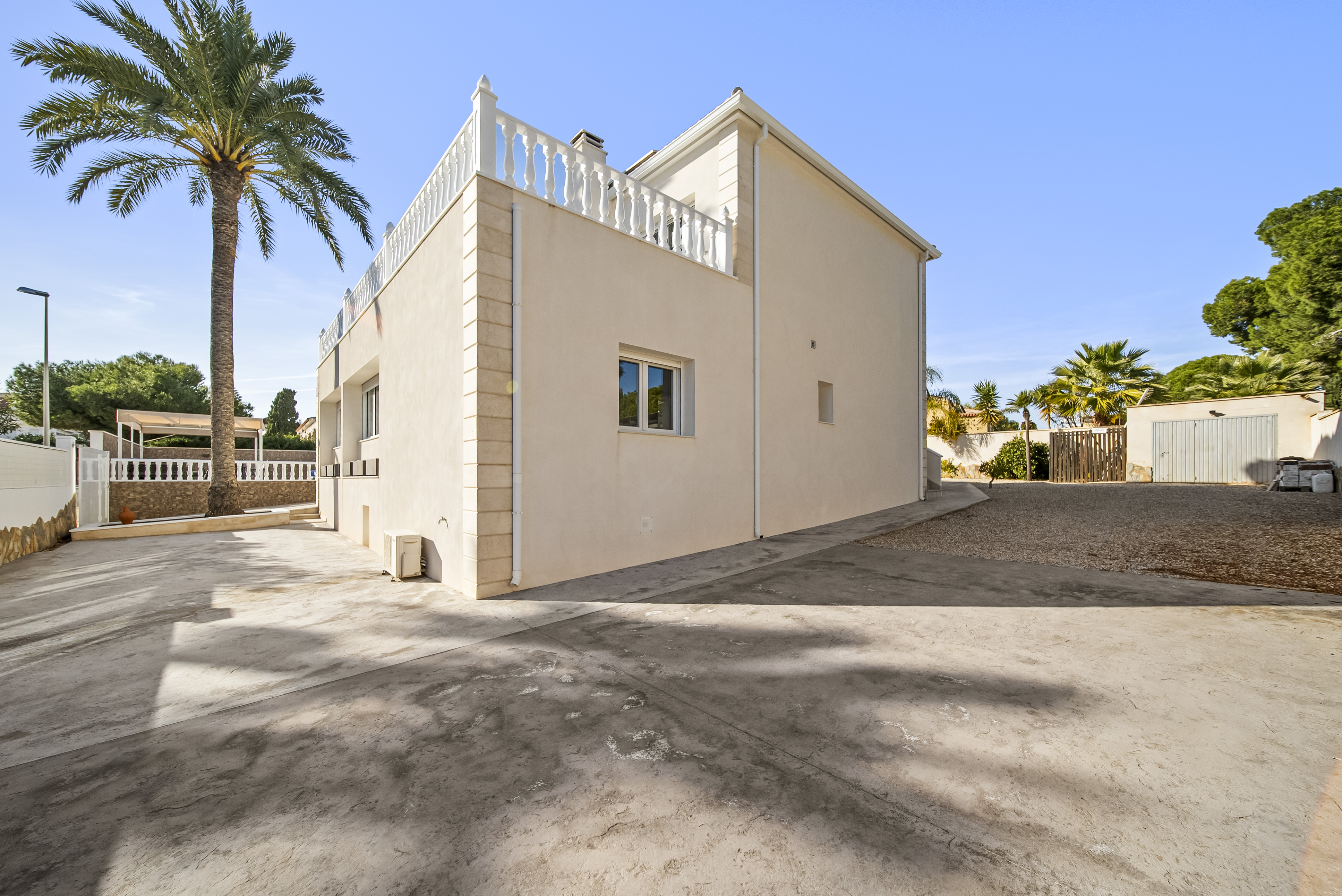 The main house is laid out on a single level and offers three bedrooms, two full bathrooms (one en suite), a semi-independent kitchen, a spacious living-dining room, two storage rooms and a pleasant covered porch, ideal for enjoying the climate all year round. On the upper floor, with a completely independent entrance, there is a private apartment featuring its own living-dining area, open-plan kitchen, two bedrooms, a full bathroom and two generous terraces with open views. A perfect solution for guests or even as tourist accommodation. The outdoor area is a true highlight: a beautifully maintained garden, several shaded areas with pergolas, chill-out spaces, a spectacular private swimming pool with jacuzzi, and on-plot parking for several vehicles. The villa is sold fully furnished and equipped (excluding personal items), ready to move into from day one. It also features air conditioning in all rooms and solar panels, ensuring energy efficiency and comfort throughout the year. This exclusive property is located in one of the most sought-after areas of the Costa Blanca, close to La Zenia beaches (400 m), the famous Zenia Boulevard shopping centre, golf courses, all amenities and excellent transport connections. IBI: 800 / year Community: 0 Detached house or villa 2 floors 254 m² built 6 bedrooms 5 bathrooms Plot of 1,001 m² Terrace and balcony Garage space included in the price Second-hand / good condition Built-in wardrobes Storage room South-facing Year of construction: 1980