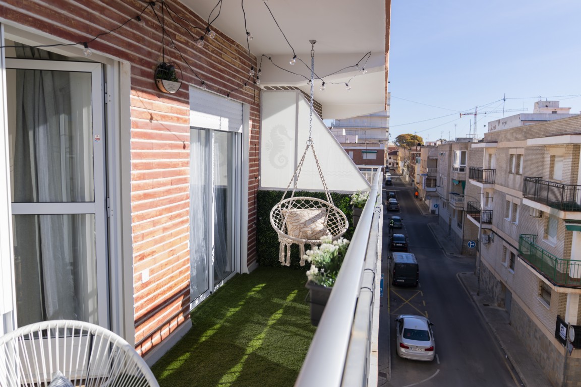 Renovated 2-bed South-Facing Apartment with lift - 200 m from Beach. Located on the third floor with lift, the property has been completely renovated to a high standard, offering modern comfort and thoughtful design throughout. Extra-wide doorways and the elevator ensure excellent accessibility for people with reduced mobility. The apartment features two spacious bedrooms and one bathroom, along with an open-plan kitchen and living/dining area that creates a welcoming and social living space. From the living area, as well as from the master bedroom, you have direct access to the south-facing balcony, allowing you to enjoy sunshine for most of the day. The property is pre-installed for central heating and air conditioning and is equipped with a security alarm and an intelligent locking system for added comfort and peace of mind. The building offers a gated inner courtyard with space for bicycles. Less than 200 metres from the property, you find Playa de Villananitos and the seaside promenade, with restaurants, cafés, and all amenities within easy walking distance. Lo Pagán enjoys a prime position between the Mar Menor—Europe’s largest saltwater lagoon—and the Mediterranean Sea, with excellent road connections via the N-332 and AP-7, ensuring easy access along the entire coast. Taxes and fees are not included in the price. A key-ready, modern, and fully accessible apartment in an unbeatable seaside location – book your viewing today or contact us for more pictures and information.