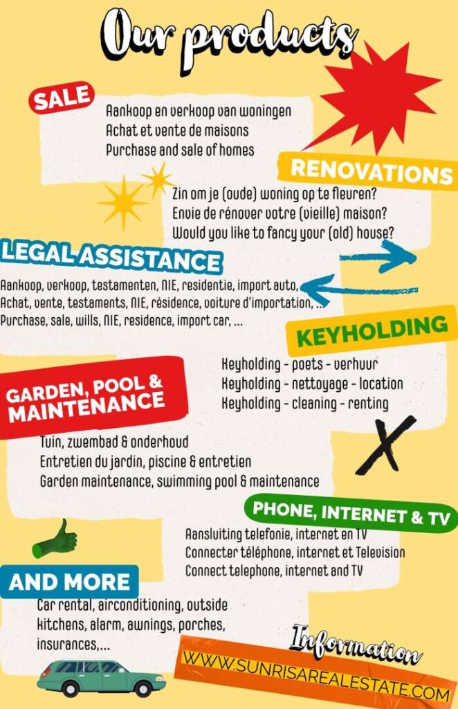 As you already know, we offer you support in all areas. To ensure this, we work with various partners. These partners all have years of experience in their field, allowing you to leave your rental, renovation, moving, registration in Spain, … to them without any worries.